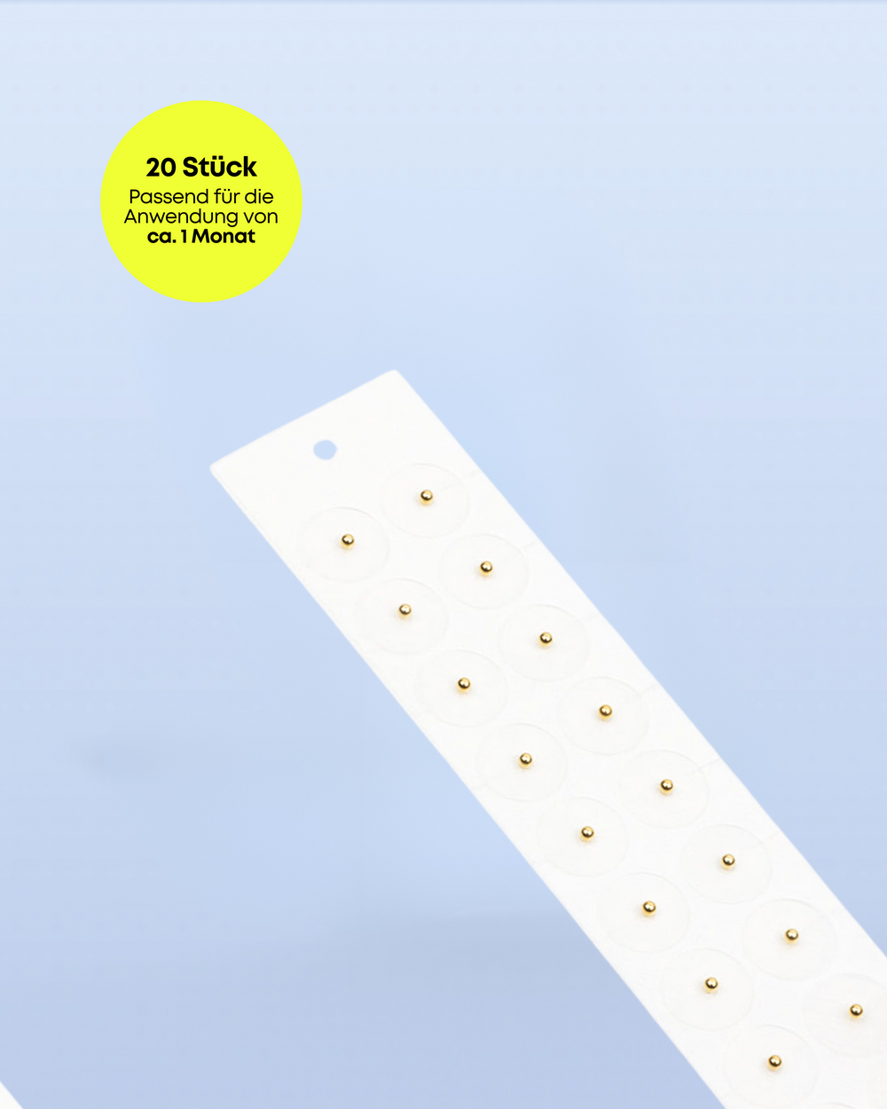 Nein, du musst nicht immer alle Punkte gleichzeitig kleben. Die Maps dienen als Orientierungshilfe. Es ist aber auch völlig in Ordnung, sich auf die Akupressurpunkte zu konzentrieren, die deine aktuellen Bedürfnisse ansprechen.