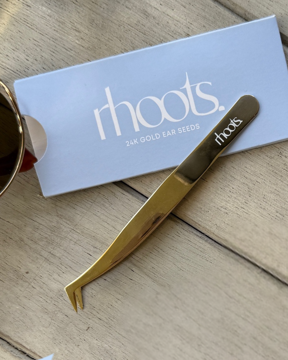 - Platziere die 24k Gold Ear Seeds mit der beiliegenden Pinzette präzise auf die markierten Punkte.